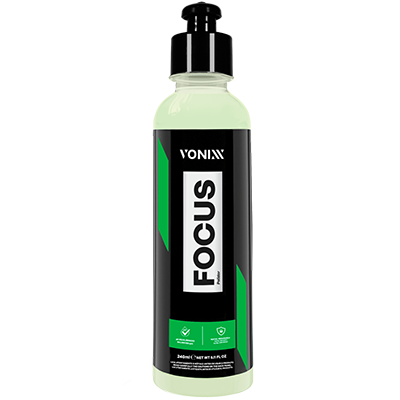 FOCUS é um potente removedor de marcas d'água para vidros e espelhos. O produto é eficaz na remoção de marcas d'água em vidros de automóveis, boxes de chuveiro, espelhos ou qualquer tipo de vidro, sem risco de causar manchas. Ao contrário de produtos ácidos, ele possui um pH equilibrado e pode ser utilizado com total segurança.